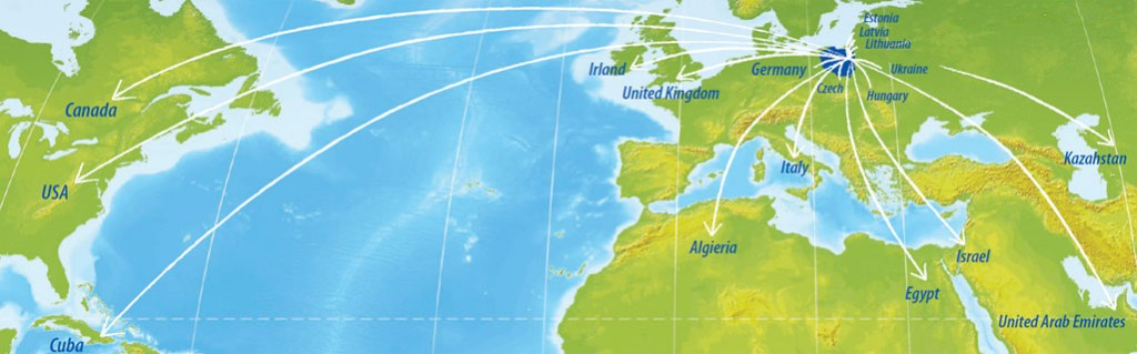 Duże znaczenie w działalności naszej firmy ma handel zagraniczny. Aktualnie co miesiąc wysyłamy za granicę około 1.000 ton produktów nabiałowych. Asortyment stanowiący trzon eksportu to: sery twarde typu ementalskiego i holenderskiego, sery nalewane, twarogi, jogurty, ser typu feta, sery pleśniowe, masło, a także produkty w proszku: serwatka i mleko.